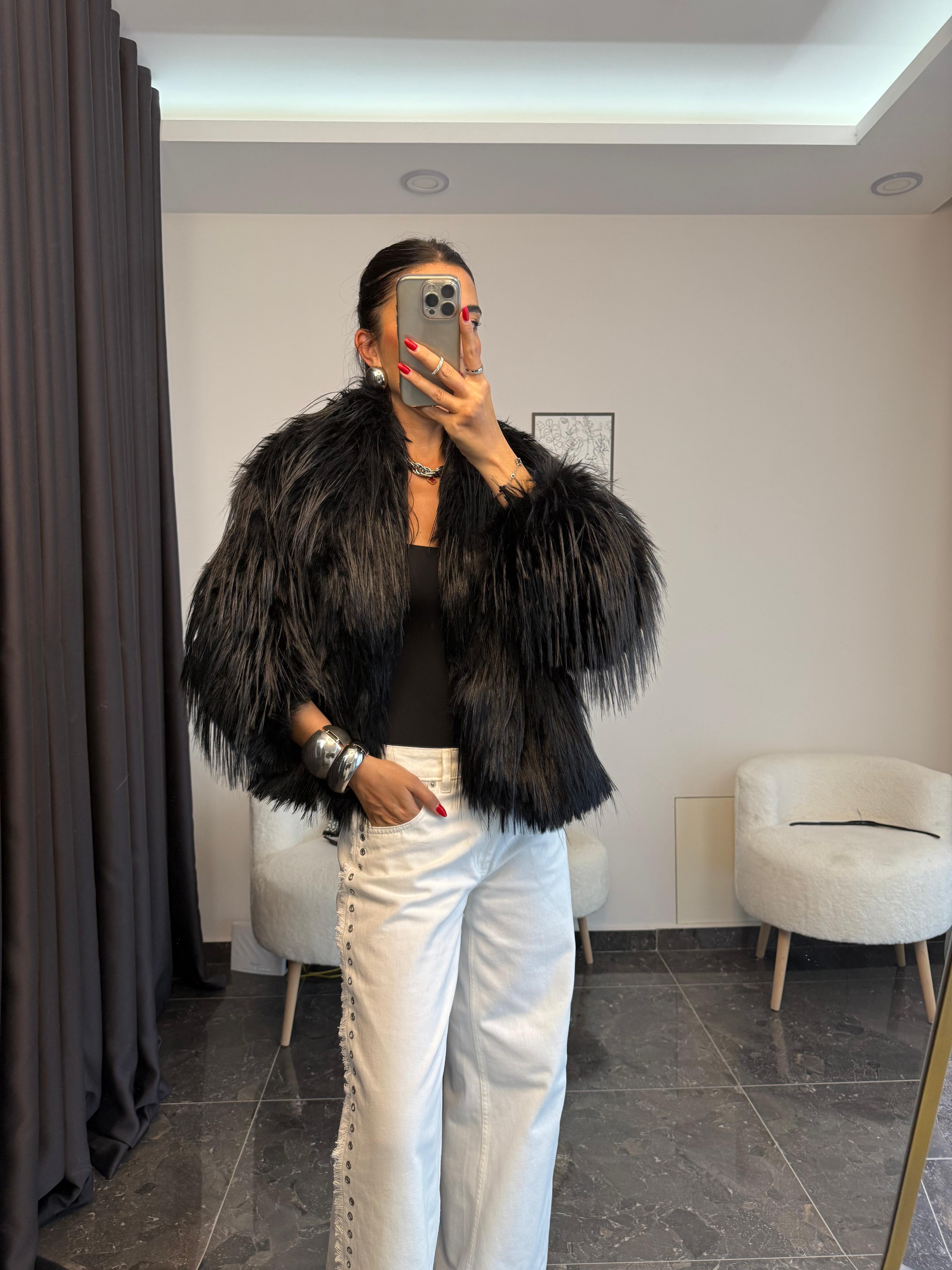 Geniş yaka deri ip kemerli kürk (IBKRK-0002)