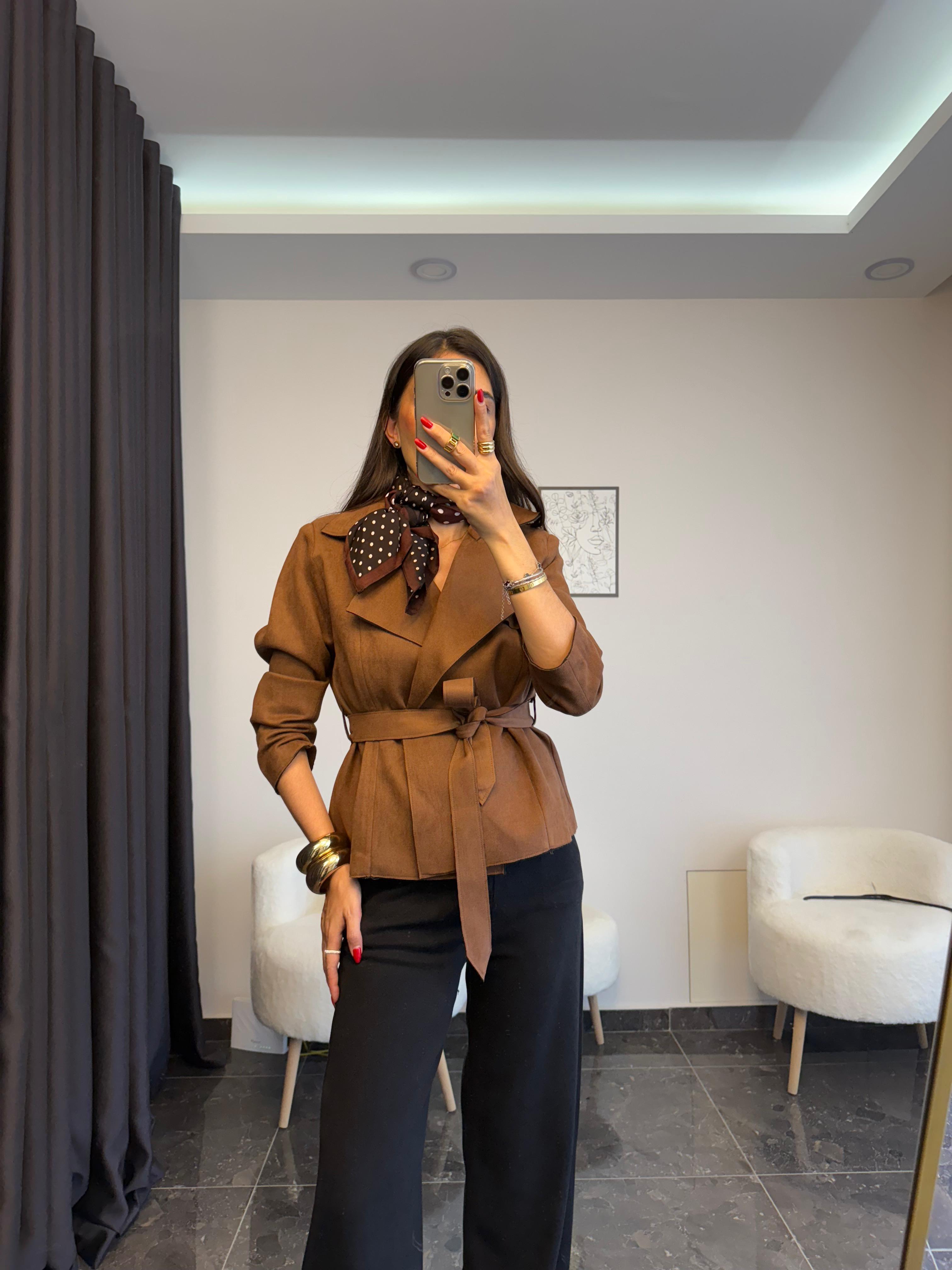 günlük şıklığınızı yükseltecek kemer detaylı ceket,zarif kesimi ve modern tasarımıyla dolabınızın vazgeçilmez parçalarından bırı olacak .