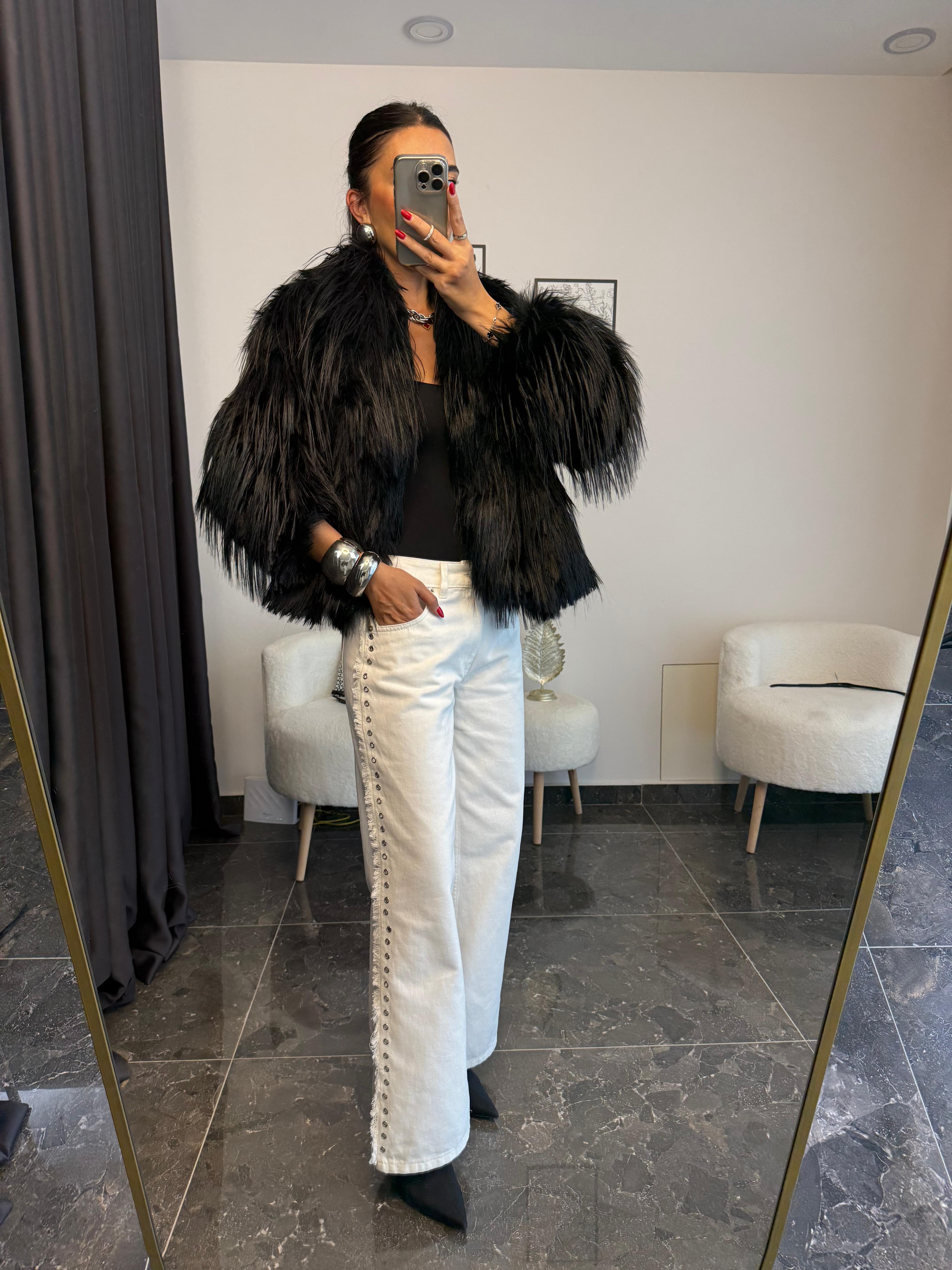 Kuşgözü detaylı beyaz jean (IBPNT-0033)