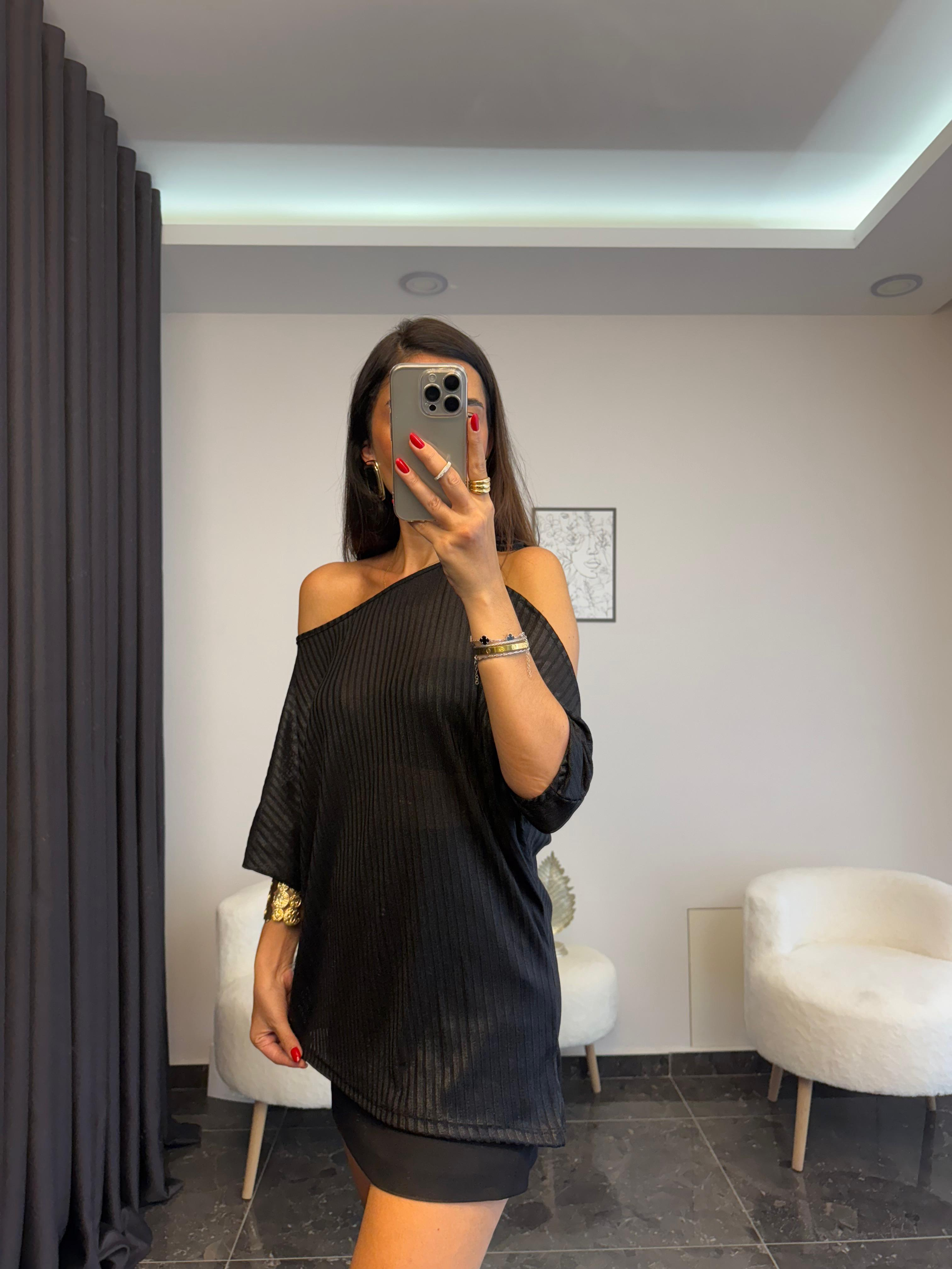 Şıklığı ve rahatlığı bir arada sunan siyah salaş bluz, omuz açık tasarımıyla modern bir görünüm kazandırır. İnce dokusu ve hafif yapısıyla hem günlük kullanımda hem de özel davetlerde tercih edilebilir. Mini etek, jean veya şık pantolonlarla kolayca kombinlenebilen bu bluz, gardırobunuzun kurtarıcı parçalarından biri olacak.