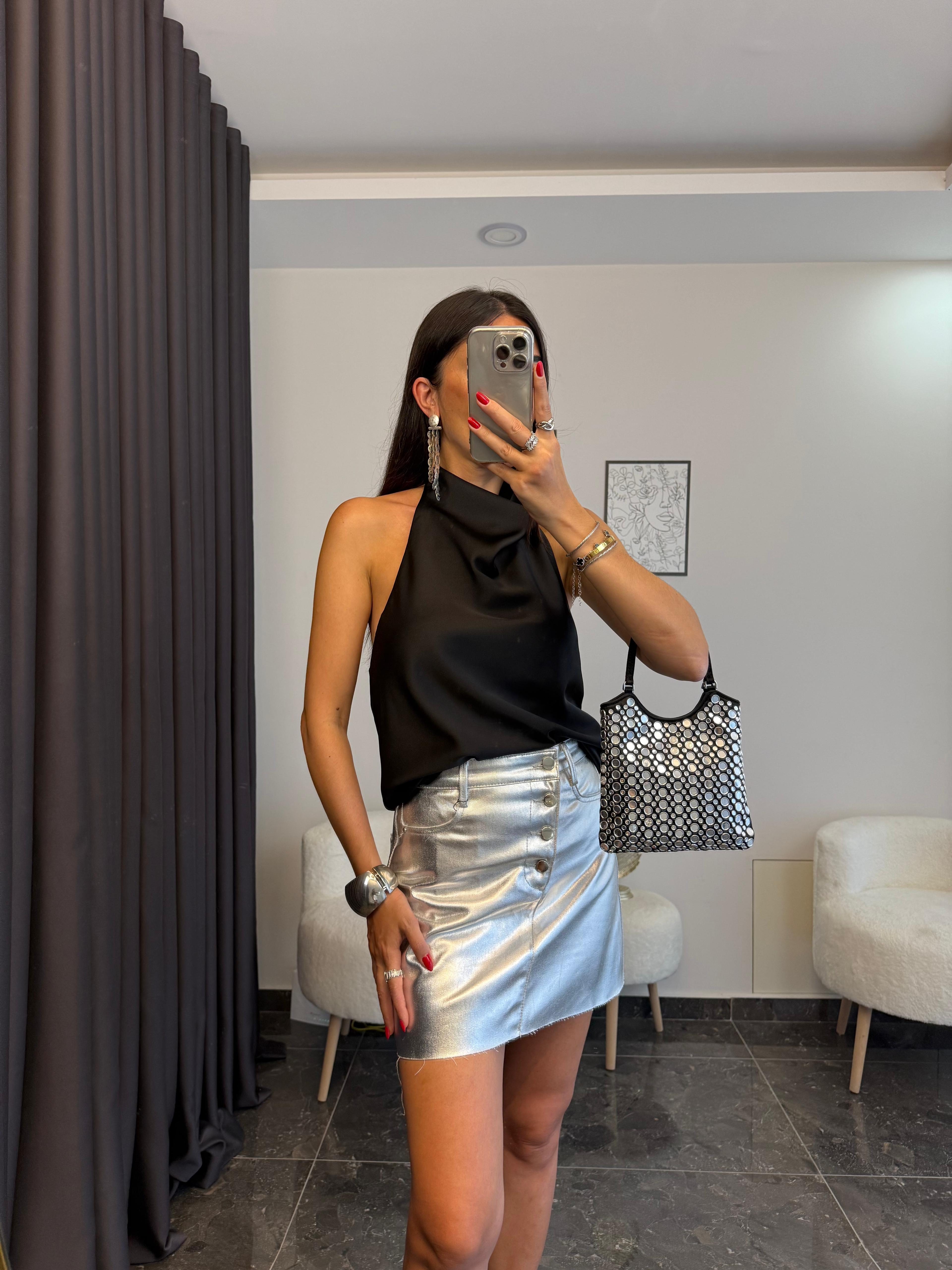 Gardırobunuzun vazgeçilmezi olacak bu siyah saten bluz zarafeti ve modern şıklığı bir araya getiriyor. Yumuşak dokulu saten kumaşı sayesinde gün boyu konfor sunarken, hafif parlak yüzeyi ile dikkat çeken sofistike bir görünüm sağlar. İster günlük kombinlerinizde ister özel davetlerde rahatlıkla tercih edebilirsiniz.