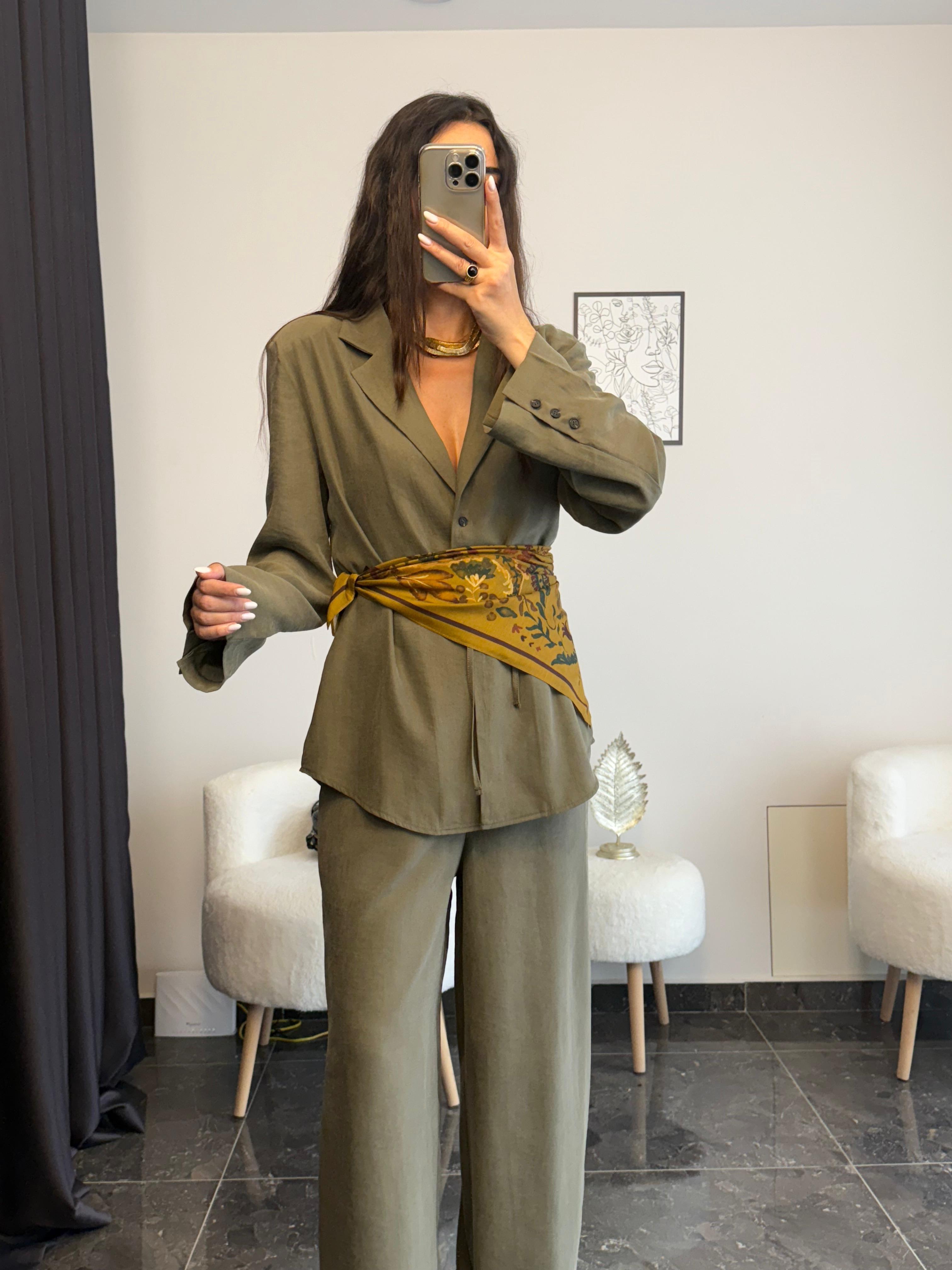 tensel kumaşın yumuşak dokusu ve nefes alan yapısıyla gün boyu konfor sunan bu takım ,şıklık ve rahatlığı mükemmel bir dengede buluşturuyor.vatkalı gömelk ceket formu modern bir duruş kazandırırken ,ince kemer detayı bel hatlarını zarifçe vurgular.beli lastikli tensel pantolon ise hem hareket özgürlüğü hemde konfor sağlar.ofıs kombınlerınden gunluk stiline kadar her ortamda zarif ,sade ve tekileyici bir görünüm yakalyın .